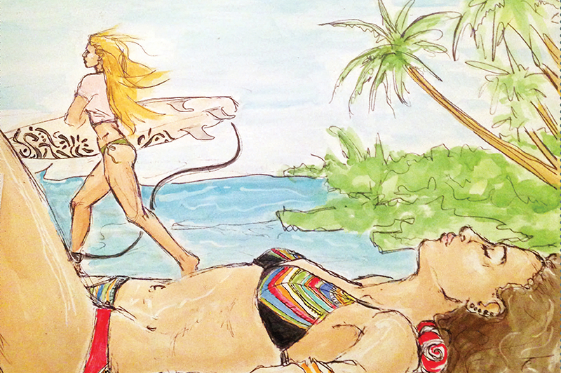 What you’ll notice as you view the comps is the people change or move around. I prefer to work in traditional media because of the feel of pen to paper, and how it’s a very meditative and pure experience for me. Free of distractions, notifications, pop-ups or screens. However, being able to work digitally, is a saving grace and one that is quite liberating. Knowing that I don’t need to be perfect, that I can change pretty much anything I want to is freeing and it allows me to really let go and play with the process.
